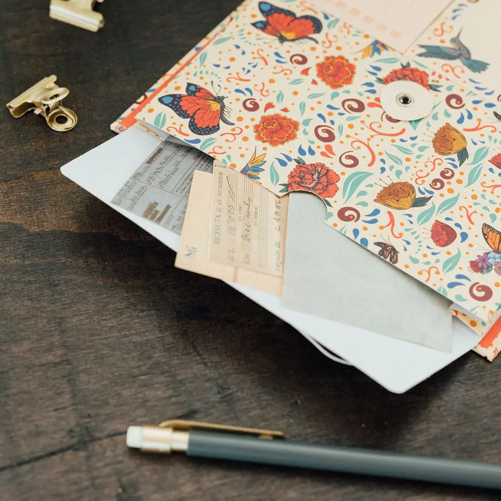 – 1 εσωτερικό φάκελο που κλείνει με κορδόνι διαστάσεων 8,9 x 15,1 εκ. για αποθήκευση εγγράφων