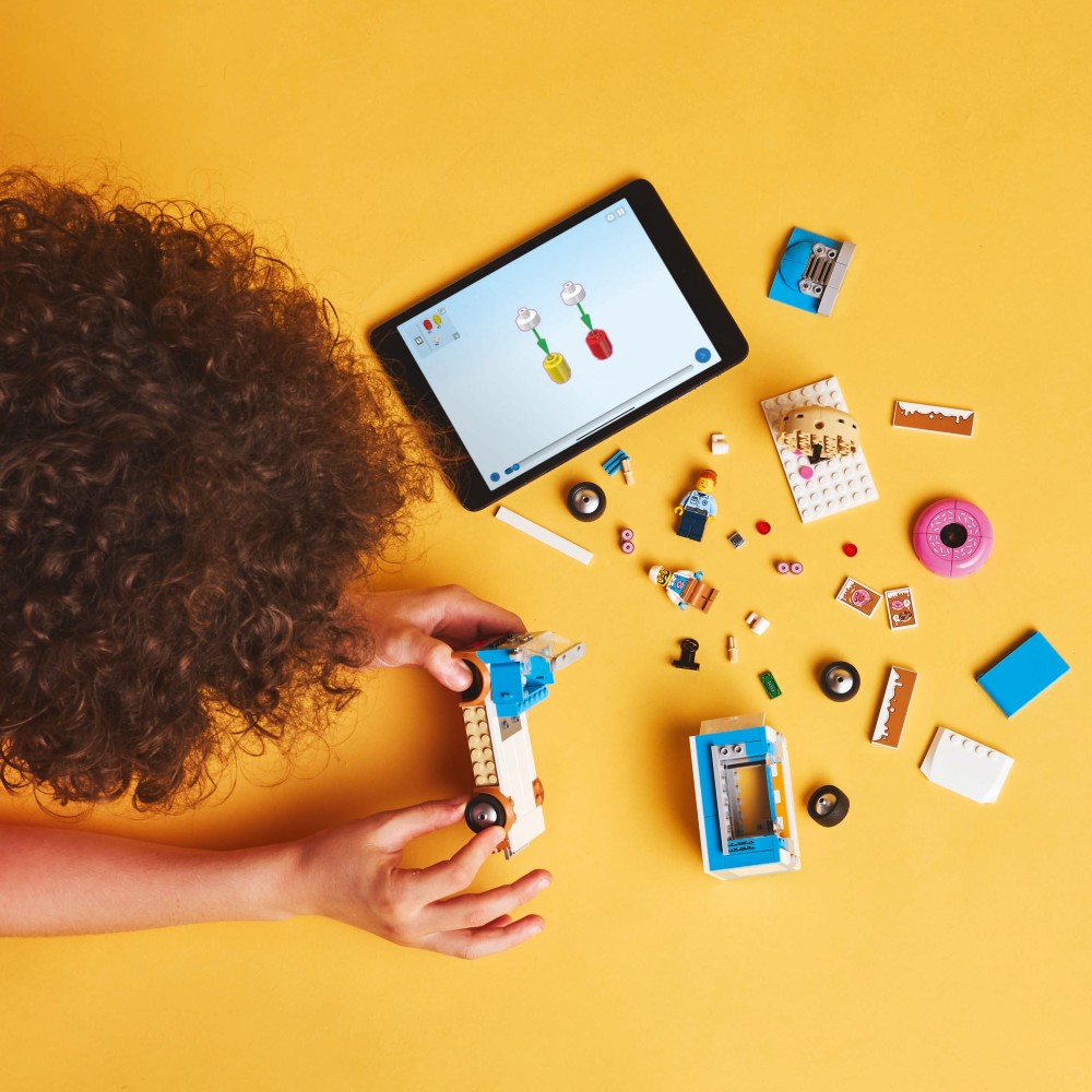 Πάρε το Φορτηγάκι-Καντίνα με Ντόνατ και πήγαινε στη LEGO® City! Αυτό το βανάκι και το αποσπώμενο κιόσκι είναι απίθανα! Δες τη διακόσμηση με γλάσο και το τεράστιο ντόνατ στην οροφή. Φτιάξε νόστιμες συνταγές στο δωμάτιο παρασκευής και σέρβιρε φρέσκα ντόνατς και ζεστά ροφήματα στους πεινασμένους πελάτες. Μετά πιάσε το τιμόνι και οδήγησε το κινητό καφέ σου στον επόμενο προορισμό!
