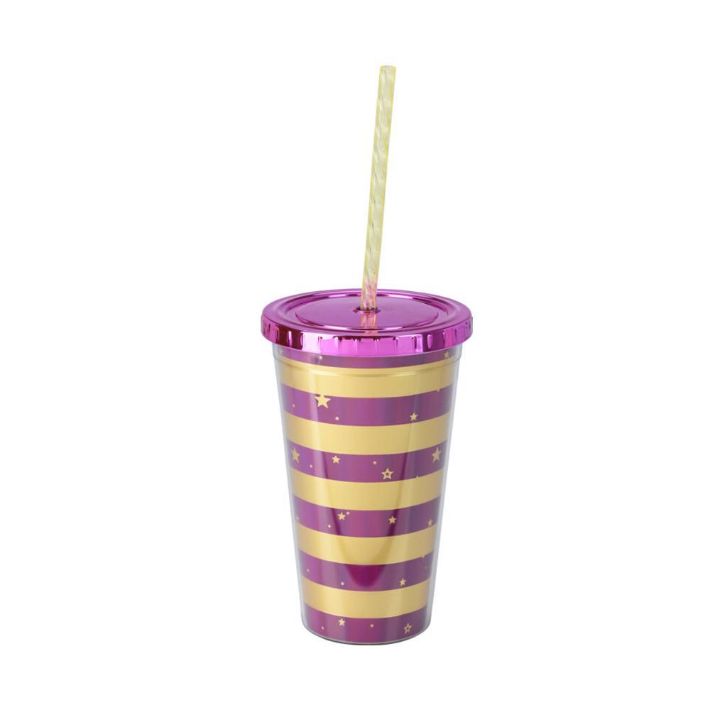 Αυτό το ποτήρι διαστάσεων Υ16xØ10 εκ., είναι κατασκευασμένο από PS. Το ποτήρι διαθέτει διπλό τοίχωμα για επιπλέον μόνωση και προσφέρεται σε δύο σχέδια με μωβ θέμα πάρτι. Περιλαμβάνει καλαμάκι από διαφανές PP, μήκους 26,5 εκ.