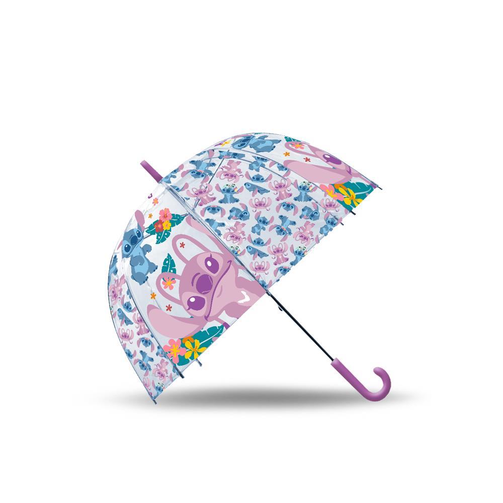 Ομπρέλα διάφανη “Stitch III”. Το μικρό σας θα θέλει να βρέχει κάθε μέρα, για να βγει έξω με αυτή την ομπρέλα διαμέτρου 46 εκατοστών. Έχει θολωτό σχήμα που βοηθάει στην εύκολη απομάκρυνση του νερού, λαβή με άγκιστρο για εύκολο κράτημα, ενώ ανοίγει αυτόματα με το πάτημα ενός κουμπιού! Διάμετρος: 46 εκ.