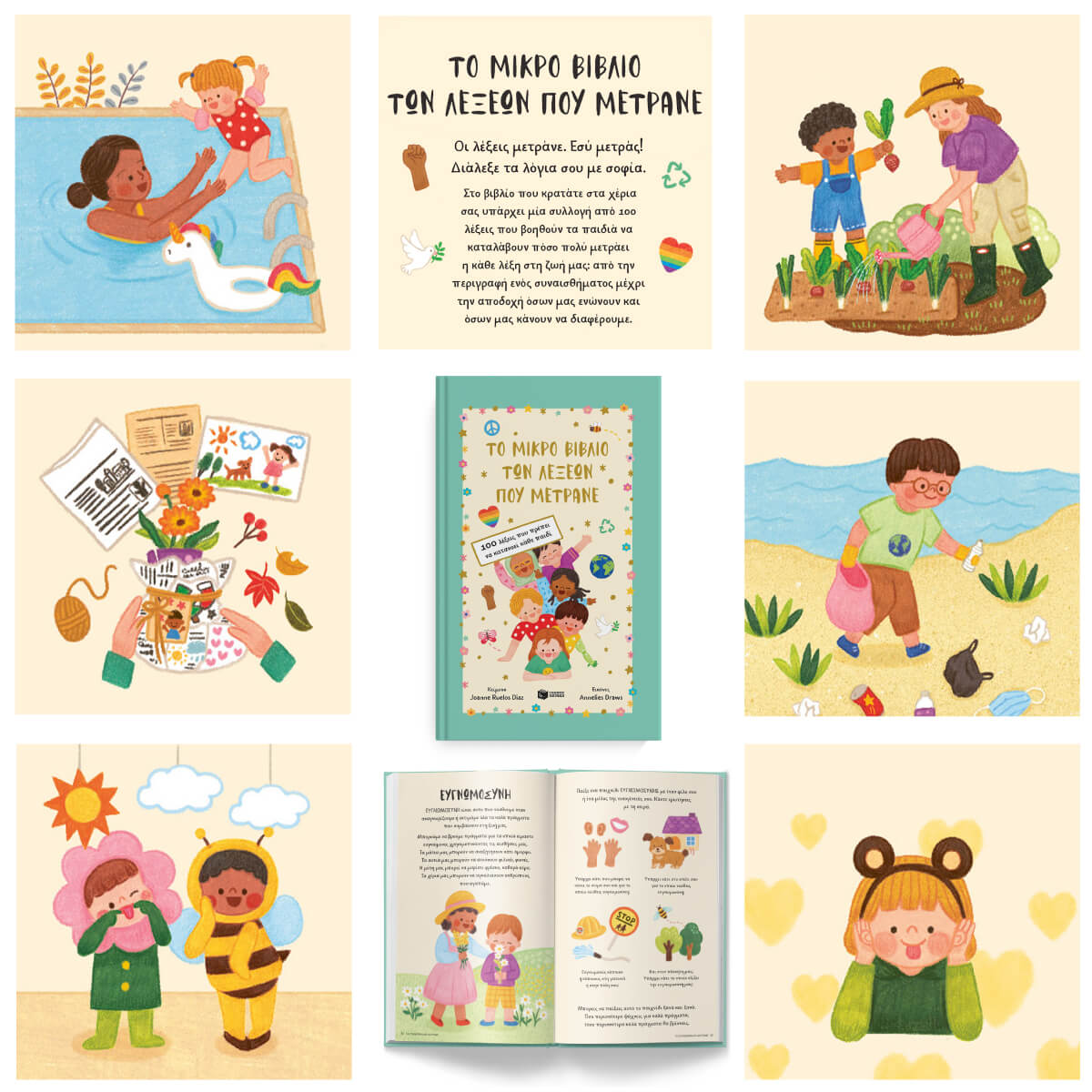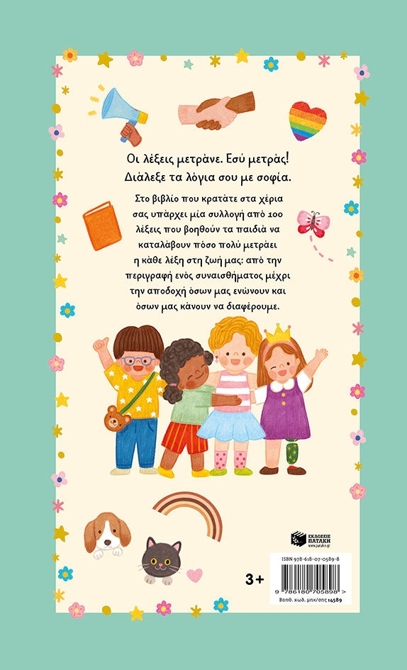 Στο βιβλίο αυτό υπάρχει μία συλλογή από 100 λέξεις που βοηθούν τα παιδιά να καταλάβουν πόσο πολύ μετράει η κάθε λέξη στη ζωή μας: από την περιγραφή ενός συναισθήματος μέχρι την αποδοχή όσων μας ενώνουν και όσων μας κάνουν να διαφέρουμε.