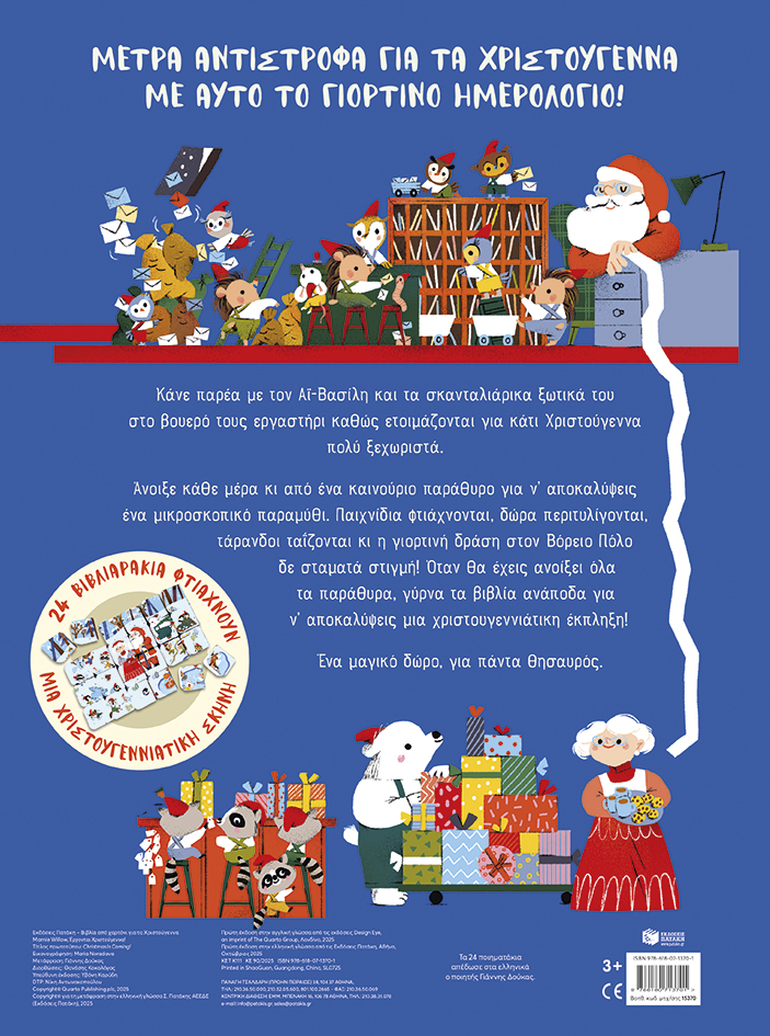 δε σταματά στιγμή! Όταν θα έχεις ανοίξει όλα τα παράθυρα, γύρνα τα βιβλία ανάποδα για ν’ αποκαλύψεις μια χριστουγεννιάτικη έκπληξη!
