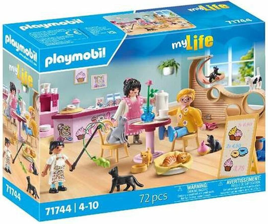 Ελάτε στην υπέροχη PLAYMOBIL Καφετέρια με γάτες, όπου ο καφές και οι αγκαλιές συναντιούνται! Οι επισκέπτες απολαμβάνουν cupcakes και καφέ σε ένα άνετο τραπέζι, ενώ οι παιχνιδιάρες γάτες εξερευνούν τον τοίχο αναρρίχησης, χαλαρώνουν στη κούνια ή κυνηγούν παιχνίδια. Με πολλές λεπτομέρειες όπως λεκάνη απορριμμάτων, στύλο γρατσουνίσματος και ακόμα και παιχνίδια για γάτες, η διασκέδαση για τους θαυμαστές των γατών δεν τελειώνει ποτέ!