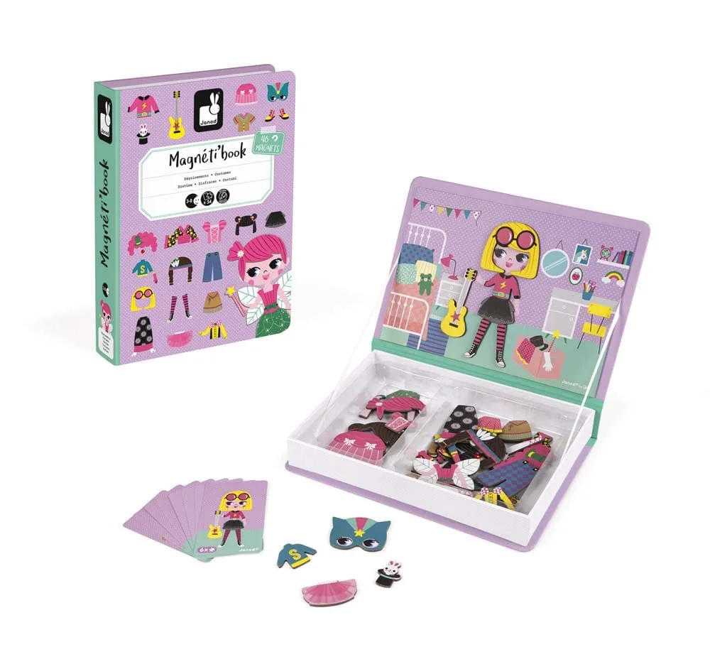 Μαγνητικό επιτραπέζιο εκπαιδευτικό παιχνίδι για κορίτσια με θέμα τα ρούχα. Αποτελείται από 46 μαγνήτες και 8 κάρτες. Όταν ανοίξει το βιβλίο, ο στόχος είναι να διαλέξει το παιδί στον μαγνητικό πίνακα τα ίδια ρούχα που βλέπει στην κάρτα.