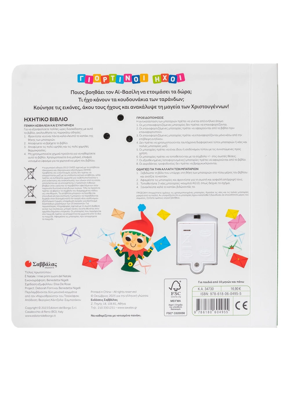 Ποιος βοηθάει τον Αϊ-Βασίλη να ετοιμάσει τα δώρα; Τι ήχο κάνουν τα κουδουνάκια των ταράνδων; Κούνησε τις εικόνες, άκου τους ήχους και ανακάλυψε τη μαγεία των Χριστουγέννων!