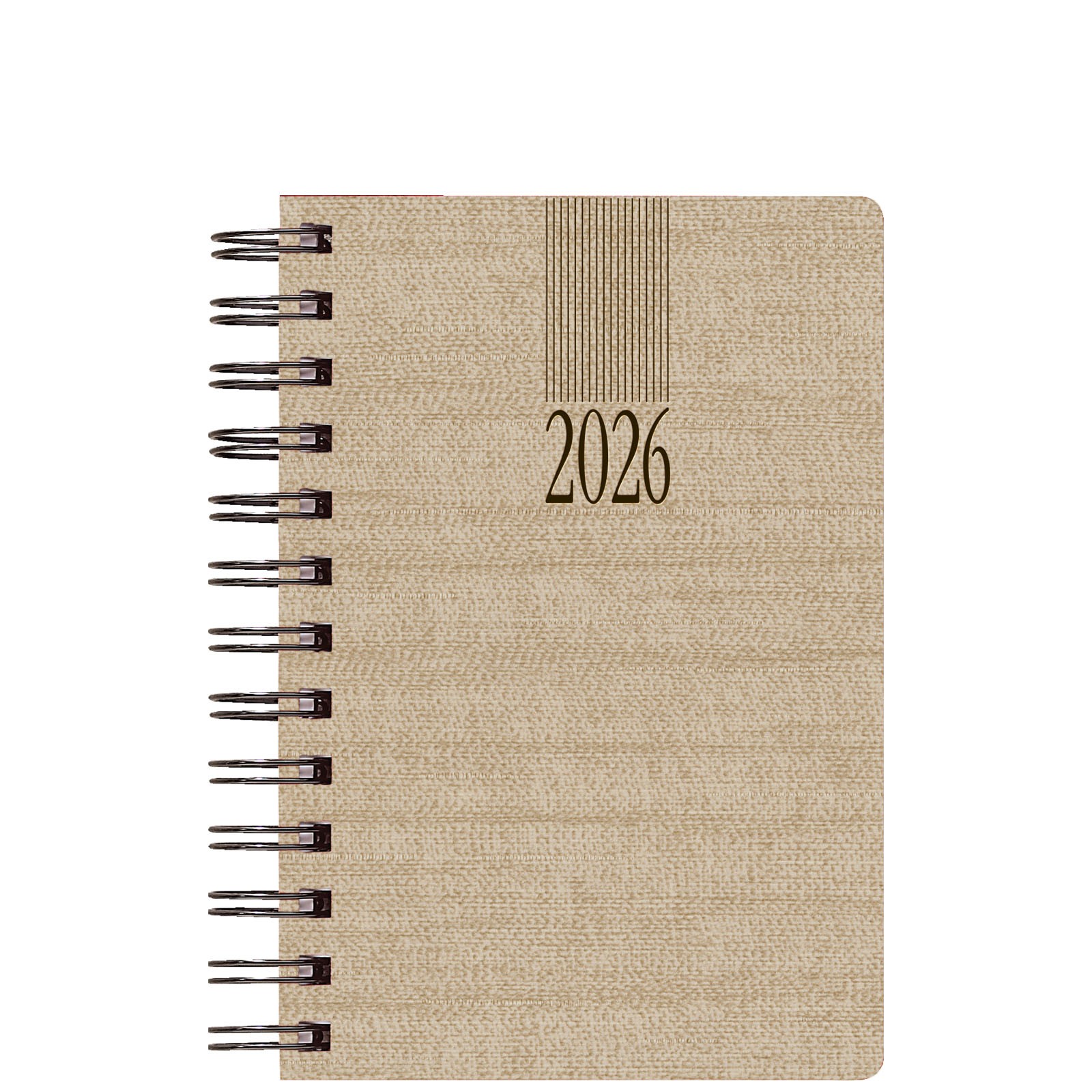 Συλλογή σπιράλ ημερολογίων 2026. Διαθέσιμα σε 3 βασικά μεγέθη. Εύκαμπτο κάλυμμα τύπου Indiana με υφασμάτινη υφή.